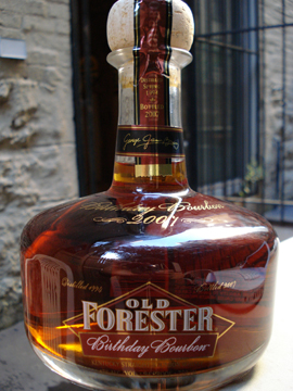 Old Forester Birthday Bourbon comes in a squat little bottle with a hearty cork stopper. Its labeling is not over done and quite tasteful. It doesn’t pander to the nostalgists but it does have a weighty feel to the branding. The bottle itself isn’t burdened by origin stories or lists of awards – those are relegated to a little booklet attached to the neck. Perhaps this is out of respect for those of us that prefer a vessel unadorned by too much text, but more likely it is simply because the number of awards this series has won can only fit in such a separate booklet.