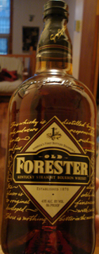 The nose on Old Forester is strong but smooth. The dominant scent is of sweet orange – almost like orange soda. Behind that is some combination of oatmeal, oak, and maybe cinnamon. That sweetness is not nearly as strong upon tasting. There is a spark of it at he very beginning, but it quickly flips to a dry grain and oak profile that disappears quickly leaving a light, oaky (with a touch of that spice) finish.